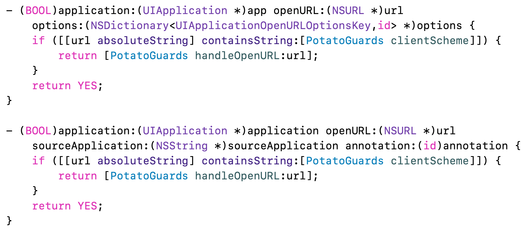 3 Configure urlscheme in your own project, the identifier is Potato, and the scheme is Potato+ClientID as shown below: