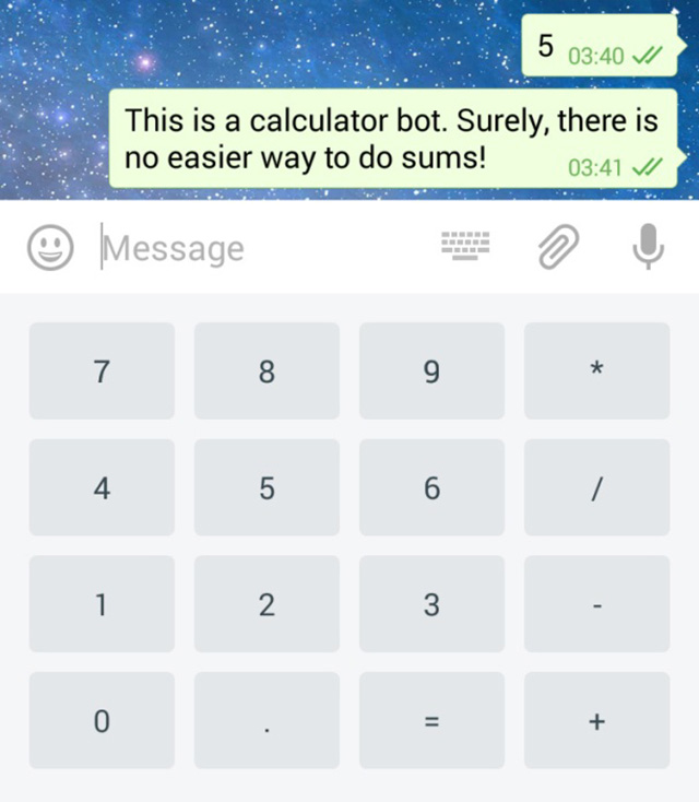 Traditional chat bots can of course be taught to understand human language. But sometimes you want some more formal input from the user — and this is where custom keyboards can become extremely useful.