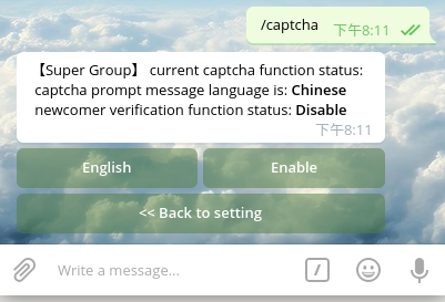 /captcha command to check it is on or off, and switch the language types of "captcha".